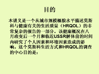 从城市水平上建立一个基本卫生轮廓,这里面有卫生的不公正,有危险因素的纵向比较,以及城市里面发病模式的不同;