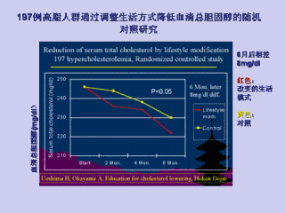 我们最近进行了200个高脂血人的生活方式干预的随机对照研究,也进行了1100名平均胆固醇水平在236mg/dl.