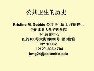 Kristine Gebbie自1995起开始在哥伦比亚大学护理学院任教,并担任卫生政策中心主任。她的教学和科研工作主要围绕卫生政策和卫生系统两方面,尤其在公众预防和公共卫生体系问题上投入了很多精力。她目前正在进行由卫生资源服务管理局和疾病控制预防中心资助的研究。