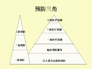 每个三角都将预防表示为包括所有形式的人群和个人的医疗保健在内的整个体系的一部分。