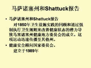 Lemuel Shattuck指导了一次对卫生状况和卫生工作的全面观察,概括出通过强制执行卫生规则改善健康状况的潜力。他的报告导致了早期的保护公共卫生的集体行动,并在马萨诸塞州创立了健康地方委员会来获得必要的政治支持。这项运动很快扩展到其他州。