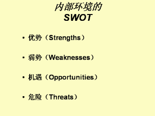 一旦确定社区的远景,任务,和价值,战略规划接下来就要评价目前的环境和影响社区任务的因素。这一过程包括有许多方法,但是可能最常使用的还是SWOT分析方法。优势和弱势是指社区内部特征和相关问题,涉及关键领域的资源,计划和组织。机遇和危险考察的是外部环境因素。SWOT分析是战略规划形成的基础,因为社区讨论的就是利用优势,减小或消除缺陷的方法,抓住机遇,避免或者控制危险。