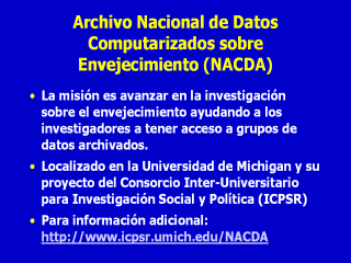 datos disponibles acerca envejecimiento en NACDA. El archivo ofrece