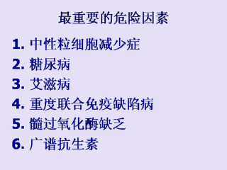 1. 最严重的中性粒细胞减少症(中性粒细胞低于100/L)可见于骨髓及造血干细胞移植患者,亦可见于强化疗治疗的恶性肿瘤患者。