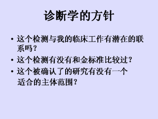 首先,你需要知道的是这个测试有没有与其他的进行过比较。假设现在有一个已经开始使用了的金标准,你需要证明它对你的诊断是有利的(这可以通过对照问题1里面的问题来判断)。实际在很多情况下,根本就没有诊断检测的金标准。这使得人们总是很积极地在寻找新的检测手段。所以,这类的论文的作者们就需要提出并证明一些可以用来评价这些新检测手段的标准。很重要的一点是要保证文献里的有效检测并不是用作金标准的。