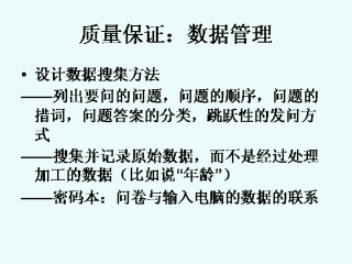无论在什么情况下,都要尽可能地搜集原始数据。比如说,应当搜集具体的年龄数据,而不是将年龄归入18-24,25-36,36岁以上等这样的年龄段。年龄段可以在数据分析的时候用统计软件轻松地创建。