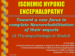 A Tutorial Review that it proposes a Physiopathological Model that serves as basis to sustain a Neurorehabilitation Program that it allows to stimulate repair Neuroplasticity processes and to restore the severe disability in Ischemic Hypoxic Encephalopathy |