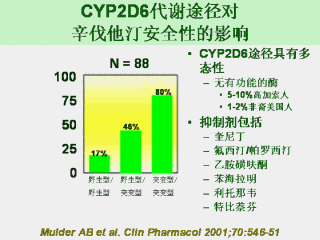 尽管多种因素决定着药物相互反应的风险,第1位的预测因素是一位病人所接受的药物种类数。将近半数75岁以上的病人使用至少5种药物。与中年病人相比,混杂用药在年老病人中是一个远为严重的问题,并且增加了药物相互反应在高龄患者中的风险。不被最通常的代谢途径也就是细胞色素P450混合功能氧化酶3A4亚族所代谢的普伐他汀并不增加药物相互反应风险,这与其余所有需要通过P450系统代谢清除的史达丁类药物不同。