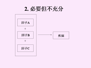 每个因子都是必要的但是单独某个因子本身不足以引起疾病,所有因素都是必要条件,但是单独的,都不能导致疾病。