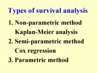 A semi-parametric model is a trade-off between the two extremes. An introductory text covering all three types of techniques plus a medical focus is: Collett D. Modelling Survival Data in Medical Research. London: Chapman & Hall, 1994. |