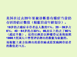 必须重视这60%的癌症幸存者是65岁以上的,表明癌症仍是一个年龄相关性疾病(3)。当前的大部分人以后都将拥有一个较长的寿命,因此有理由相信癌症幸存者也将相应的增加。这个假设也得到了当前人口趋势评估到2035年65岁以上的美国人将达到20%,而2000.7.1这一数字评估值为12.6%这一结果的印证。
