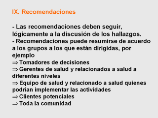 - Al hacer recomendaciones, no use sólo los resultados del estudio, sino