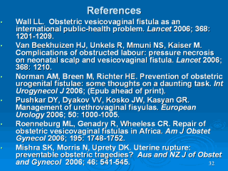 -Miller S, Lester F, Webster M, and Cowan B. Obstetric fistula: A