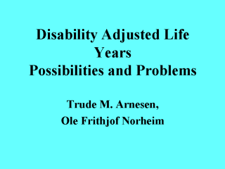 contributed equally much to the presentation. In alphabetical order: Trude M. Arnesen, MD, MPH. PhD student, National Institute of Public Health, Pb 4404 Nydalen, 0403 Oslo, Norway. E-mail: trude.arnesen@folkehelsa.no Ole Frithjof Norheim, MD, Ph.D. Associate professor, Department of Public Health and Primary Care, University of Bergen, Norway. E-mail: ole.norheim@isf.uib.no |