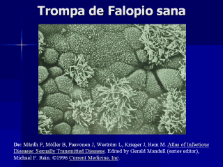 | Infección en las trompas de Falopio dañada las células ciliadas, las cuales son importantes para transportar las bacetrias y el esperma. En esta diapositiva, podemos ver una trompa de Falopio ciliada, sana, a diferencia de … |