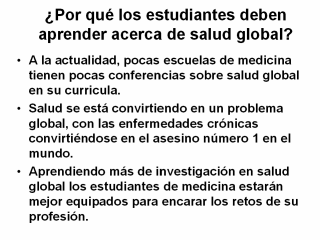 Esta conferencia ha sido diseñada para miembros del profesorado y estudiantes de las escuelas de medicina y de salud pública alrededor del mundo.