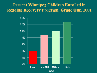 Educators from these low-SES areas reported that so many of their Grade 1 students needed remedial reading instruction that they could not afford to provide the resource-intensive Reading Recovery program to all of them. Many high-need schools therefore use their early literacy funds for programs that are less intensive but reach more children. |