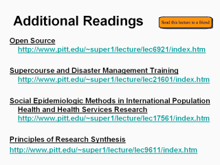 Supercourse Project for additional lectures www.pitt.edu/~super1 This lecture has been developed by Faina Linkov, Ronald LaPorte, Eugene Shubnikov, Mita Lovalekar and the Global Health Network Supercourse team. Please e-mail super1@pitt.edu to contact the developers. Join the Supercourse by visiting http://www.pitt.edu/~super1/assist/join.htm