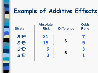 Note also that the differences in the odds ratio for the S+E+ and S+E- is 2,