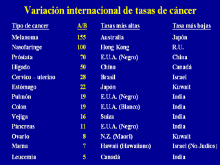 en la incidencia de cáncer, con