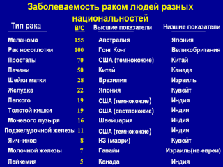 генетические этнические факторы. Частота заболеваемости меланомой также