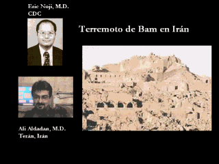 En Diciembre del 2003, Irán fue golpeado por un terremoto. Tenemos a uno de los líderes el mundo, Eric Noji, M.D. de CDC para producir una conferencia sobre el terremoto de Bam. Además, una persona que está en el lugar Ali Aldadan, un estudiante de Doctorado en Salud Pública en epidemiología produjo una segunda conferencia JET de los desafortunados eventos. Ali enseñó a estudiantes en Pittsburg con presentación PowerPoint aquí y enseñando por teléfono. Los resultados de esto fueron publicados the Lancet.