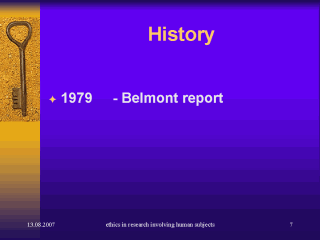 presented the Belmont Report (http://ohsr.od.nih.gov/guidelines/belmont.html