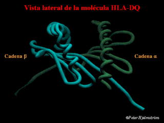 Es una representación del antígeno HLA-DQ con la cadena alfa y la cadena beta. Juntas, forman un cleft, la cual es el sitio biológicamente activo del antígeno. La mayoría de los alelos DQA1 y DQB1 difieren en la secuencia de DNA, particularmente en la región cleft. Estas diferencias en las secuencias levemente cambian la estructura del cleft y por lo tanto impactan en como funciona inmunologicamente.