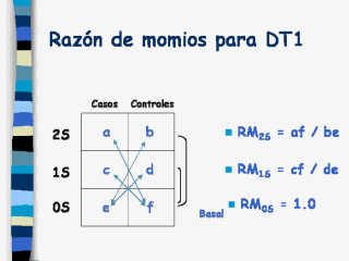 Celdas e y f representan casos y controles, respectivamente, con 0