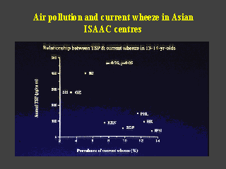 It is unlikely that air pollution is protective, and it is probably just a marker of the level of economic development. Nevertheless, there is little evidence that air pollution is positively associated with asthma prevalence, either between or within populations. On the other hand, it is associated with exacerbations of pre-existing asthma |