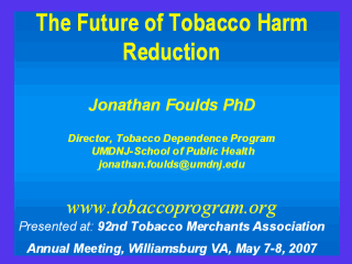 This was an invited lecture at the annual meeting for the Tobacco Merchants Association (an organization of tobacco industry representatives). The lecture is also available at: http://www.tobaccoprogram.org/fouldstma.htm web page.
