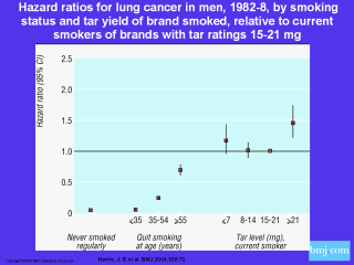 with a tar yield of less than 15 mg have no less risk of lung cancer