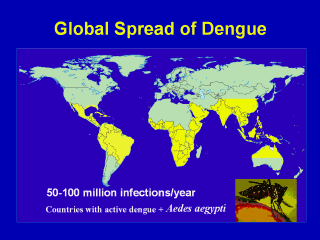 | It has been estimated that in recent years as many as 10 million cases of dengue fever and 500,000 cases of DHF/DSS occur annually. Case fatality rates in some countries reach 5%. |