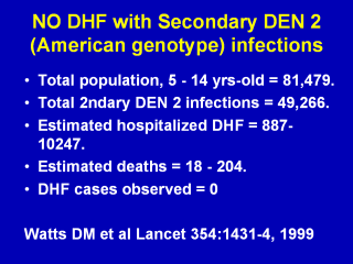 dengue 2 infections in 1995. Based upon data from other dengue endemic