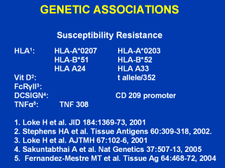 A variety of genetic markers studied in individuals with secondary dengue infections have been statistically significantly associated with mild (resistance) or severe (susceptibility) disease.