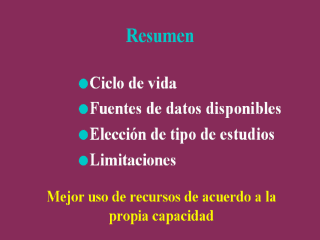 del ciclo de vida, las fuentes potenciales de datos, las elecciones