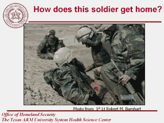 | So with that as a foundation I would like to show you how this soldier would get home and describe the lessons we have learned doing these missions. |