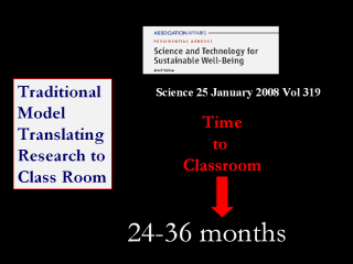 Using the traditional model, it takes 2-3 years to translate research findings from the Journals to the classroom.
