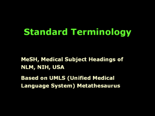 | World understands MeSH. We may have to translate our terms to MeSH equivalent terms. |