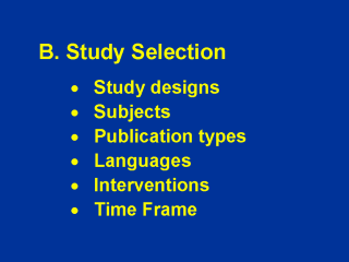 trials versus randomized and nonrandomized trials), (2) types of subjects to include (for