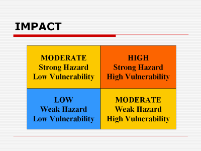 combined suggest that impact will be high. Conversely a weak hazard with low