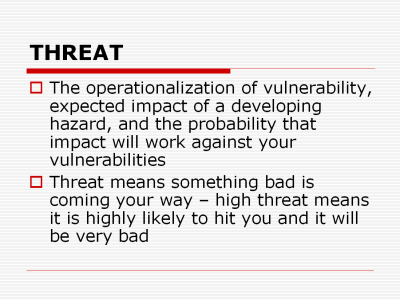 Threat is hazard translated into movement. As