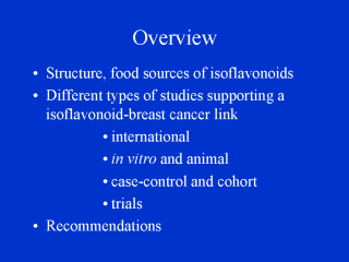 specific effects of the isoflavonoids including - estrogenic effects - We will also review the epidemiologic data and discuss some ideas for addressing some of the unanswered questions about the relationship between isoflavonoids and breast cancer |