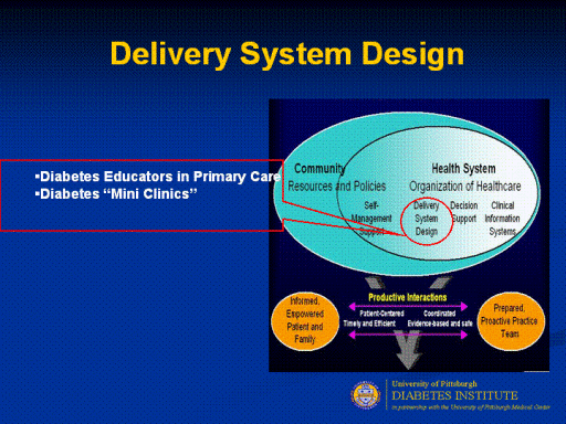 Practice were asked to redesign the process in which they saw their patients with diabetes for routine visits. This was our way of implementing a modified version of the mini clinic that I talked about before.  As part of this practice redesign, a CDE was made available to the provider on the day of their choosing – so in order to maximize the time, office staff were encouraged to schedule routine visits on these days.  Also, these diabetes days were designed with the idea that the provider would be more focused on diabetes for that particular day.  And providers were encouraged to refer patients to the CDE for point of service education whenever possible.