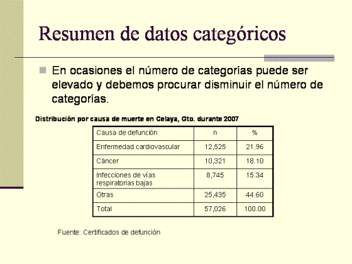 incluyen el resto de causas de muerte; si no lo hacemos así, el