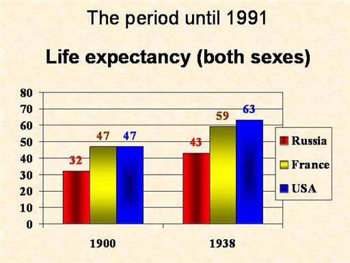 expectancy in Russia was 32 years, compared to 47 years in France and