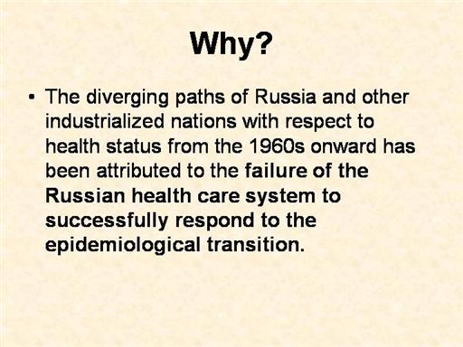 “Addressing the Epidemiologic Transition in the former Soviet Union: