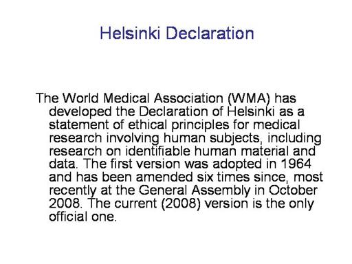 research." The Declaration of Helsinki was revised in 1975, 1983, 1989