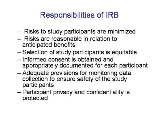 purpose, IRBs review research protocols and related materials (e.g.,