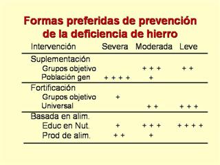 deficiencia de hierro varía de acuerdo a la severidad del problema.